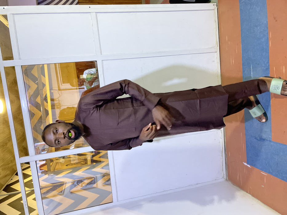 A dark-skinned male individual stands indoors within a commercial establishment in Jos, Nigeria