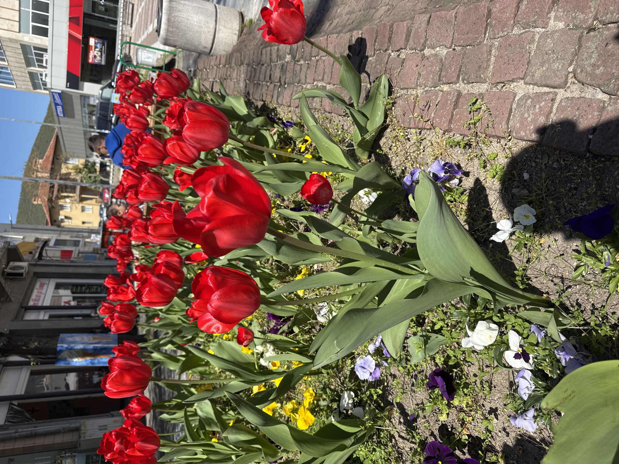 - "A street-level view of a flowerbed in the city of Peshtera, Bulgaria, displays a dense row of vibrant red tulips in full bloom" by FM-LLKcV2, licensed under CC BY 4.0