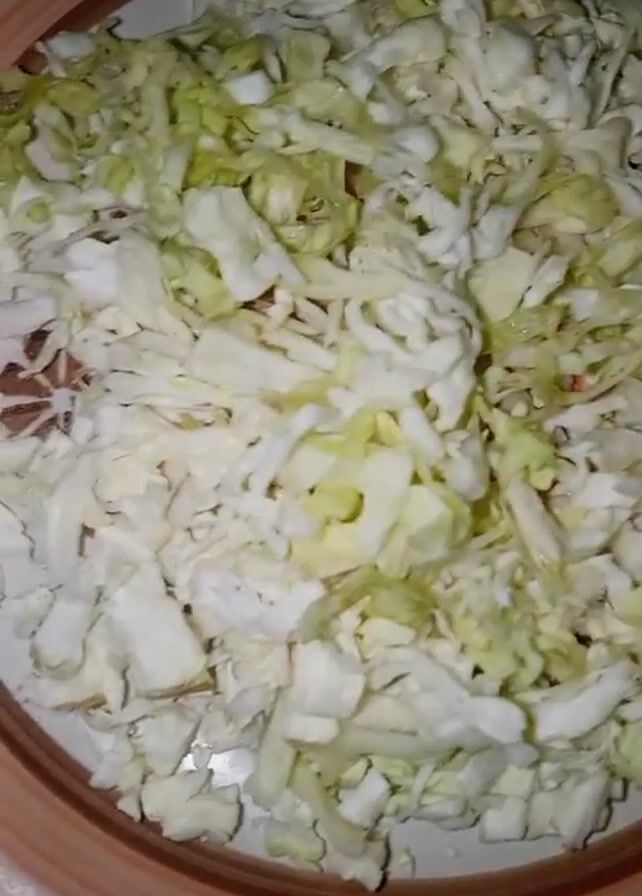 two plates of food. One contains shredded cabbage, while the other contains what appears to be beans in a red sauce, served with a side of shredded cabbage. A spoon is present on the bean plate. The plates are placed on a dark surface. The video seems to be a close-up shot of the food.
