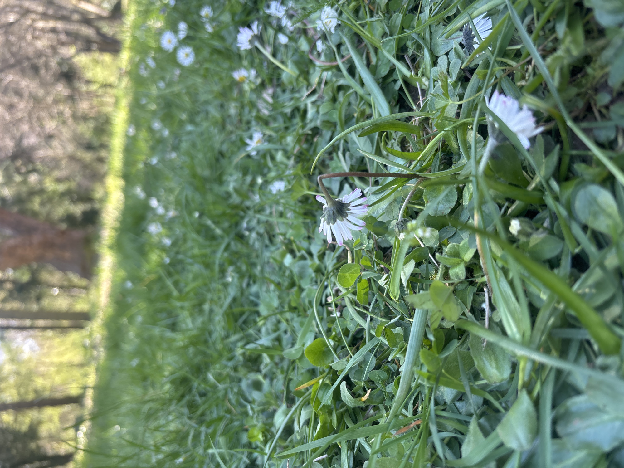 patch of grass and clover with scattered daisies