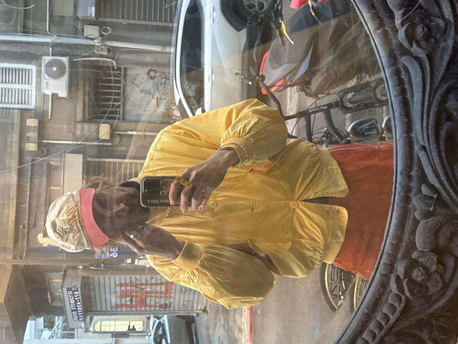 The image captures a person taking a mirror selfie on a city street in Unknown, Palestinian Territory