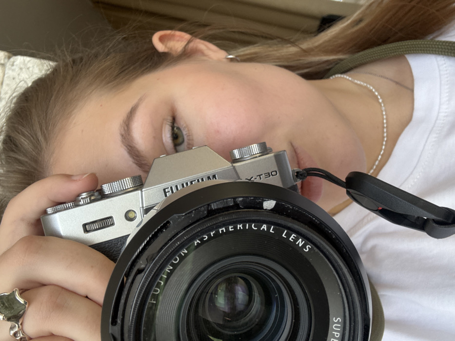 - "An close-up image depicts a person, presumed female, partially obscured by a camera in Sutomore, Montenegro" by FM-7mF7g2, licensed under CC BY 4.0