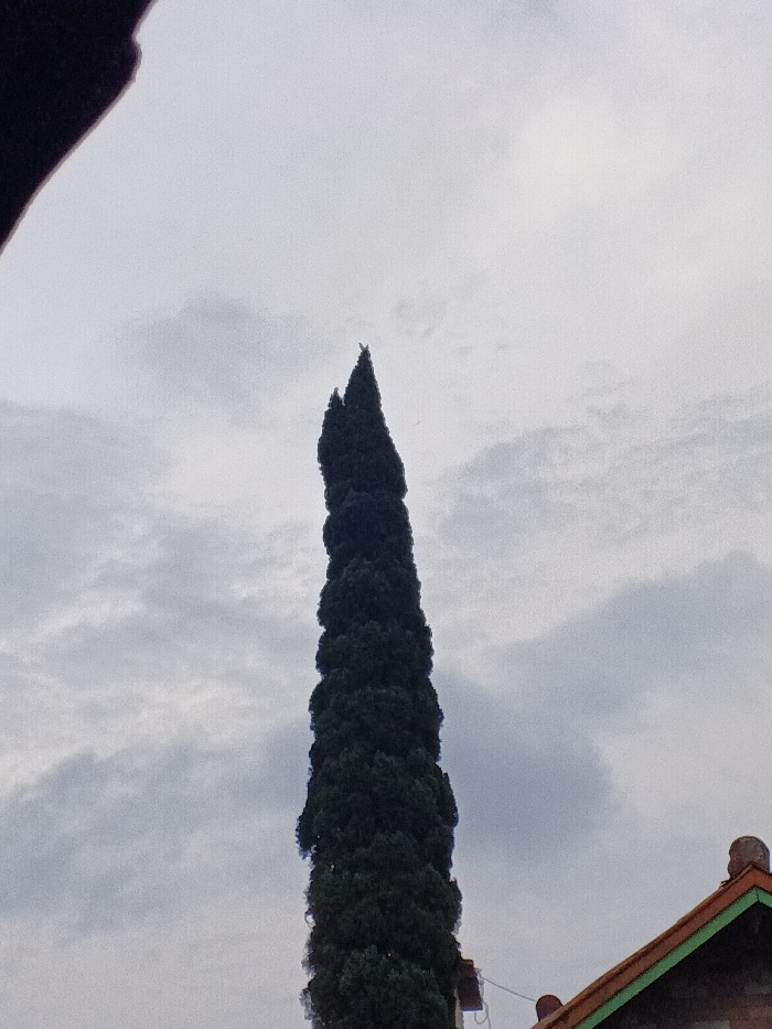 - "A vertical composition captured in Kyauk Hsoke, Myanmar, displays a tall, slender, dark green columnar coniferous tree extending through the central portion of the frame against an overcast sky" by FM-HDizq2, licensed under CC BY 4.0