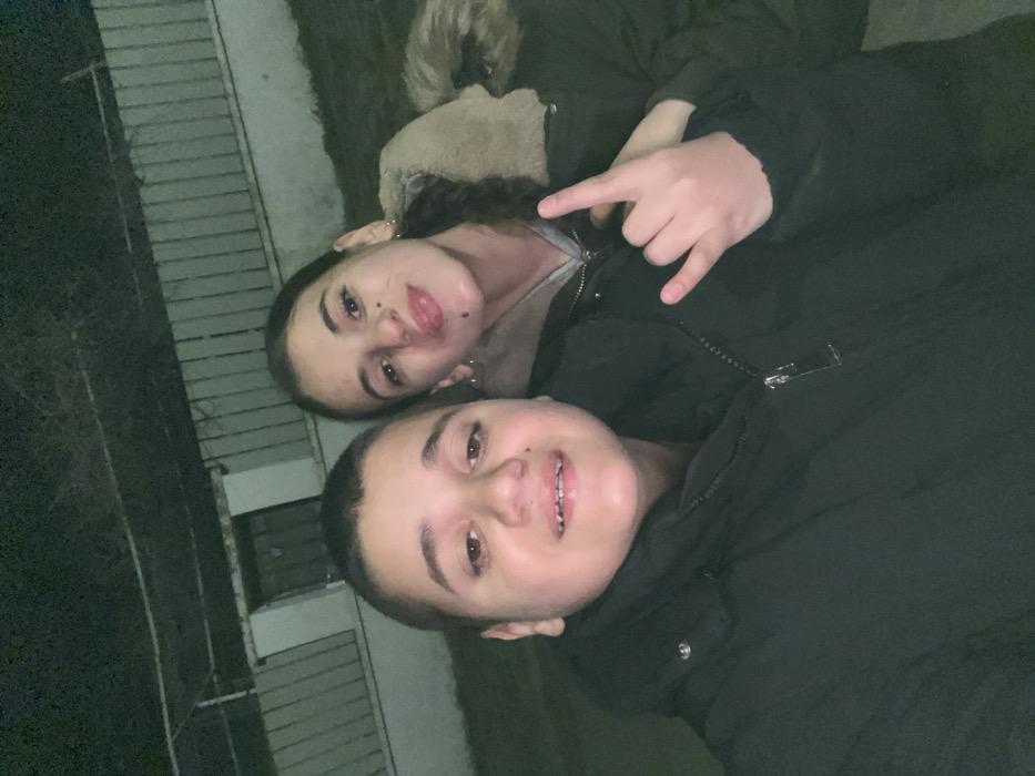 Two individuals are depicted in a close-up, dimly lit selfie-style photograph taken at night in Lozarevo, Bulgaria