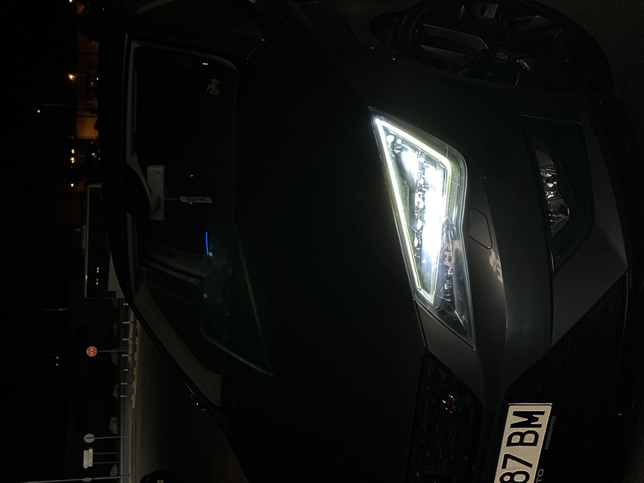 - "The image captures the front-left portion of a dark-colored vehicle at night, positioned in an outdoor, artificially lit environment" by FM-XMi8X2, licensed under CC BY 4.0