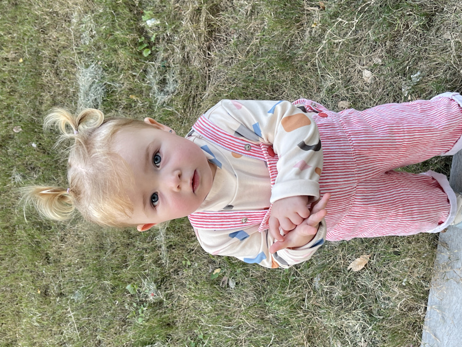 - "A young child with blonde hair styled in two small pigtails and blue eyes stands outdoors, looking directly at the viewer" by FM-oJoph1, licensed under CC BY 4.0