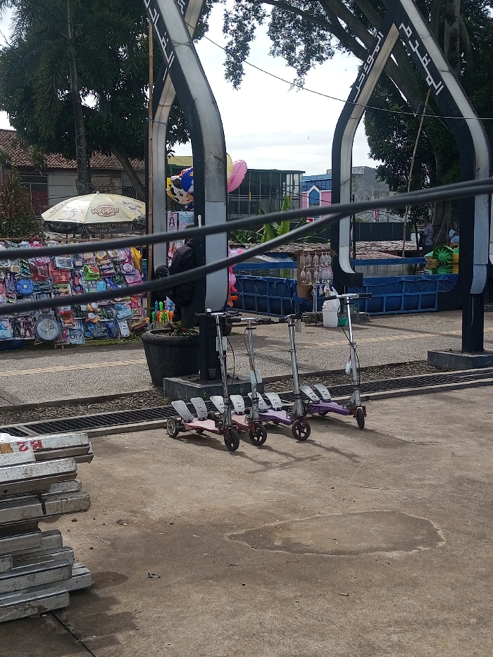 - "Three scooters are parked on a concrete surface, with a metal grate behind them" by FM-KfPFQ2, licensed under CC BY 4.0
