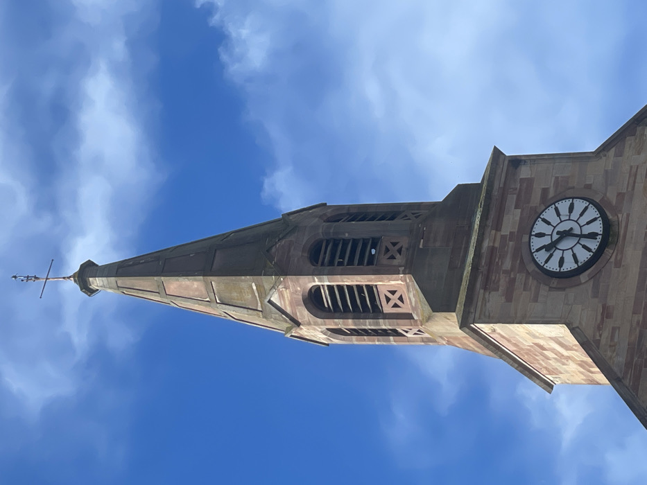 - "The image displays the upper portion of the Temple Neuf (New Temple) church tower in Strasbourg, France, located at Place du Temple Neuf" by FM-fSpHy2, licensed under CC BY 4.0