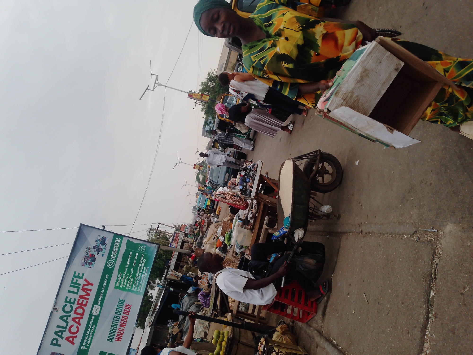 The image captures a bustling street scene in Sabon Tasha, Nigeria