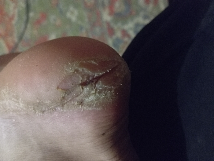- "A close-up image focuses on a human heel, exhibiting a deep, horizontal crack across the surface" by FM-q1SSa2, licensed under CC BY 4.0
