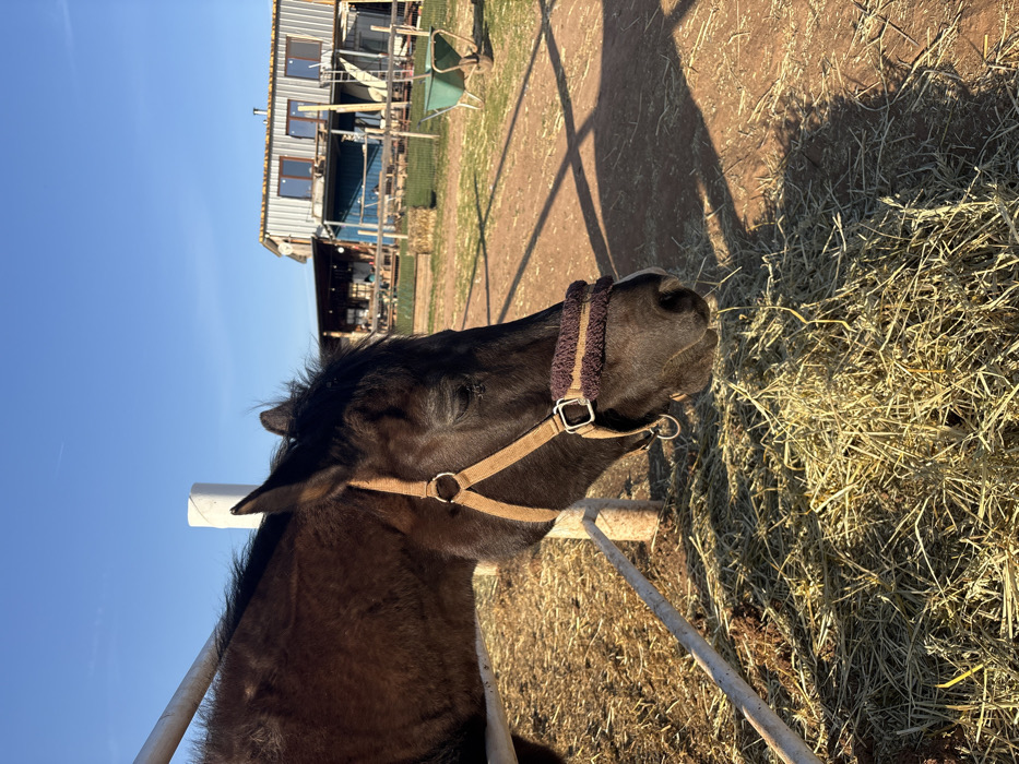 - "The image captures a dark brown horse standing in an outdoor enclosure in Voynegovtsi, Bulgaria, under a clear blue sky" by FM-W0JCt1, licensed under CC BY 4.0