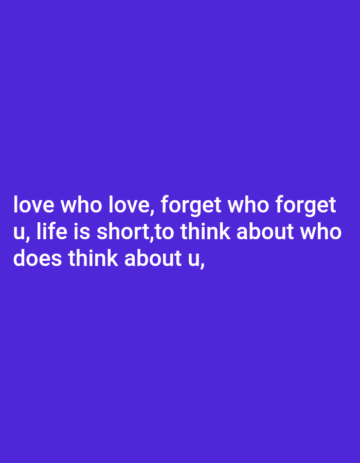 The image displays a static composition against a solid, uniform deep purple background, encompassing the entire frame. White, sans-serif text is digitally overlaid, centered in the lower half of the frame, presenting a three-line statement. The text reads: "love who love, forget who forget / u, life is short,to think about who / does think about u,". No discernible physical environment, objects beyond the text, individuals, or actions are depicted within the image. Therefore, no specific location in the city of Ojo, Nigeria, or any other geographical setting, is visually represented by the image content.