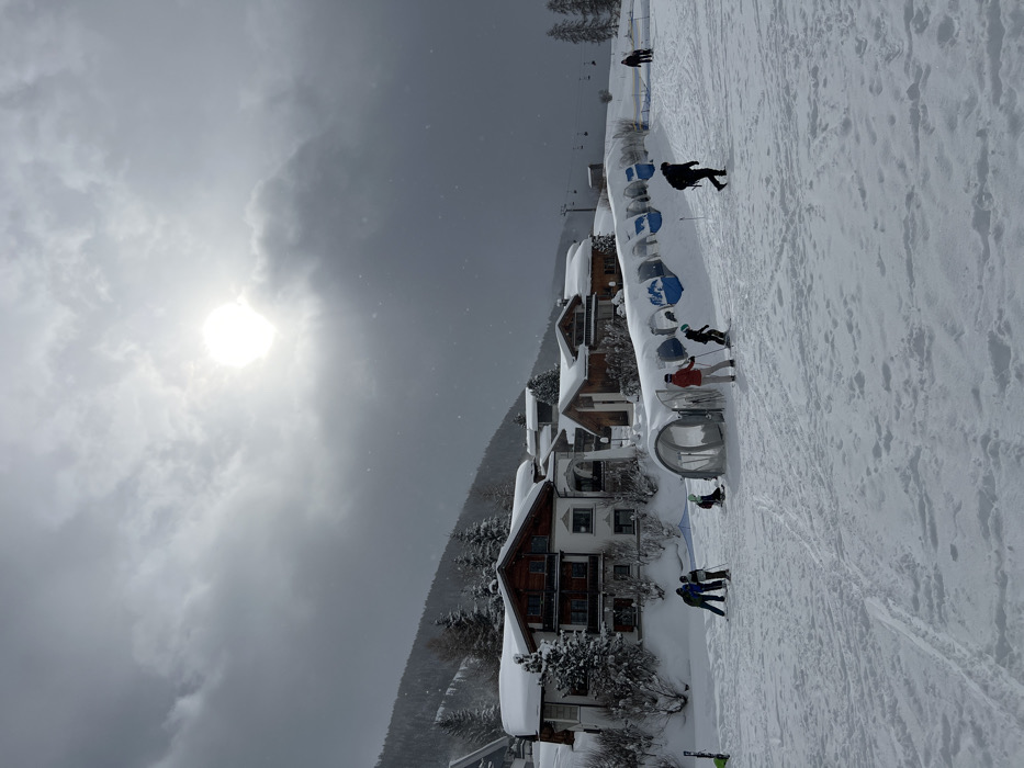 - "The image depicts a snow-covered ski area in Davos, Switzerland, under an overcast sky with a prominent, bright sun partially visible through the clouds" by FM-zXd4g1, licensed under CC BY 4.0