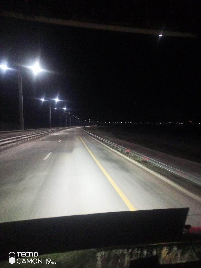 - "The image displays a night scene of a multi-lane asphalt highway, viewed from the interior of a vehicle, located in Елховское сельское поселение, Russia" by FM-FtNu52, licensed under CC BY 4.0