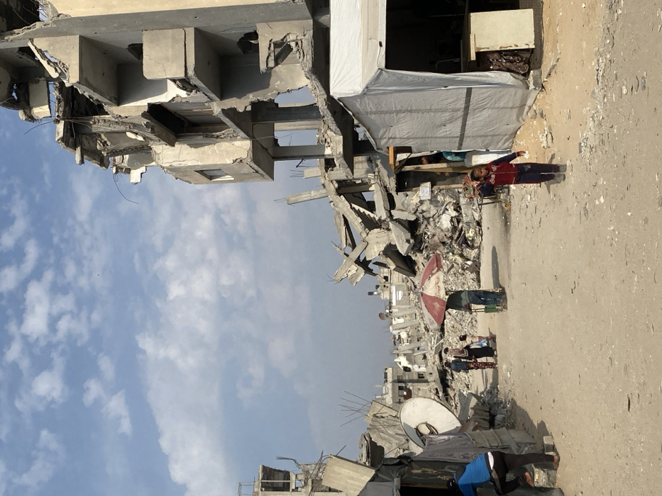 - "The image portrays a devastated urban street in Khan Yunis, Palestinian Territory, under a partly cloudy sky" by FM-zLbwE2, licensed under CC BY 4.0