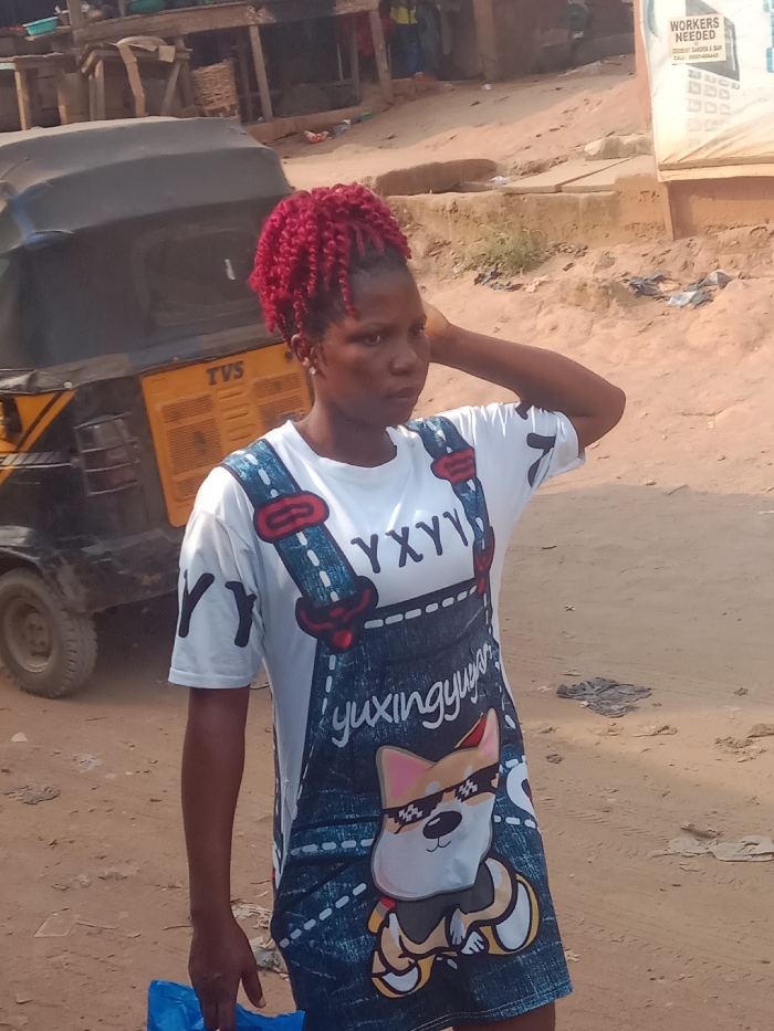 - "An image captured in Onitsha, Nigeria, depicts a young woman standing on an unpaved, light brown dirt road under bright daylight conditions" by FM-z3DGk1, licensed under CC BY 4.0