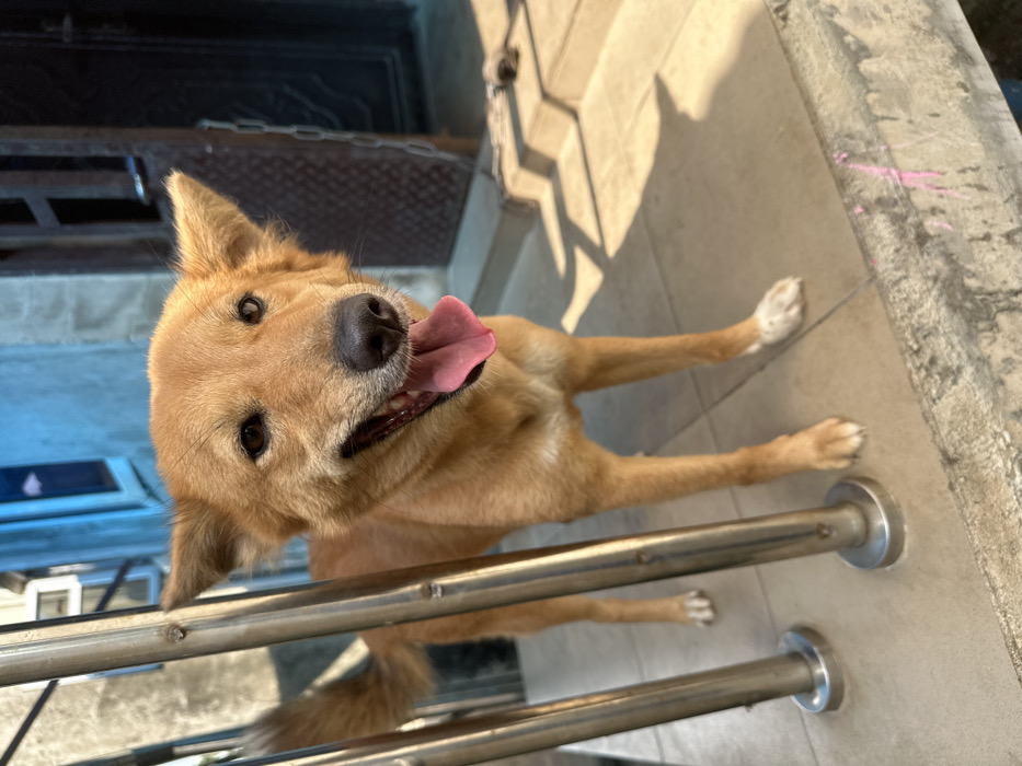 - "An amber-colored, short-haired dog stands facing forward on a tiled outdoor surface, likely a porch or walkway, in Uyo, Nigeria" by FM-jhOse2, licensed under CC BY 4.0