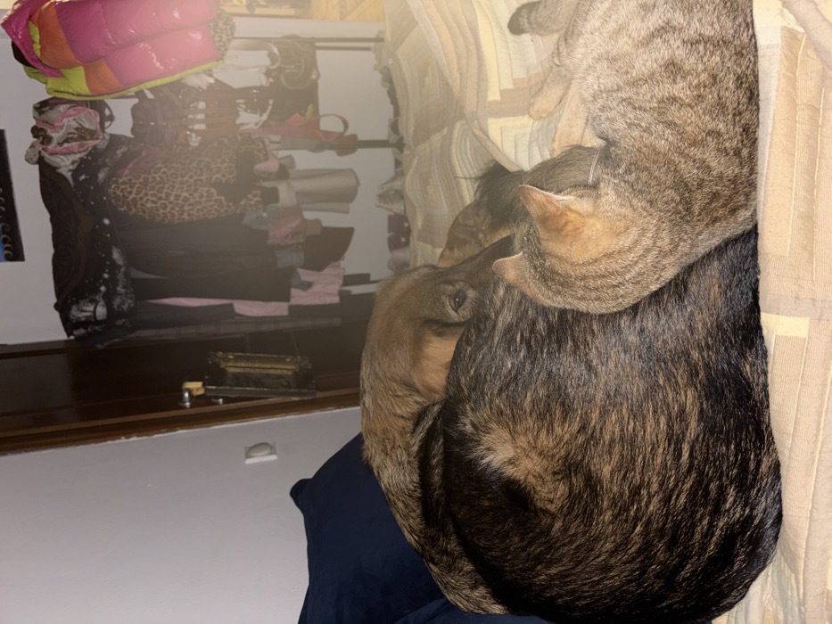 - "A gray tabby cat is curled up, resting its head on a larger, dark brown dog" by FM-CAOHw1, licensed under CC BY 4.0
