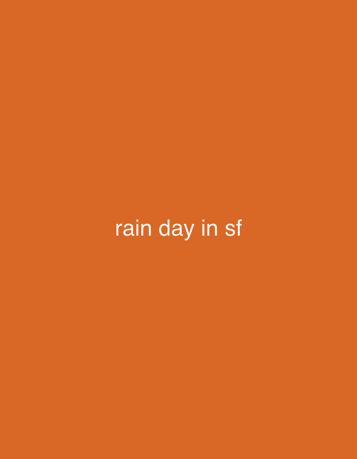 The image features an orange background with the text "rain day in sf" centered