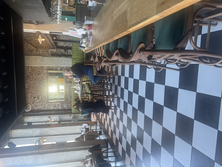 - "The image displays the interior of a cafe or restaurant in Sofia, Bulgaria, featuring an industrial-chic aesthetic with rustic elements" by FM-Tqqde2, licensed under CC BY 4.0