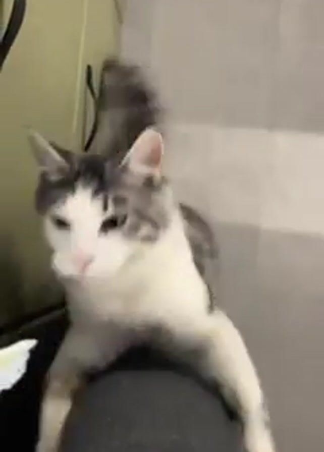 - "gray and white cat perched on a person's leg" by FM-ewVLI2, licensed under CC BY 4.0