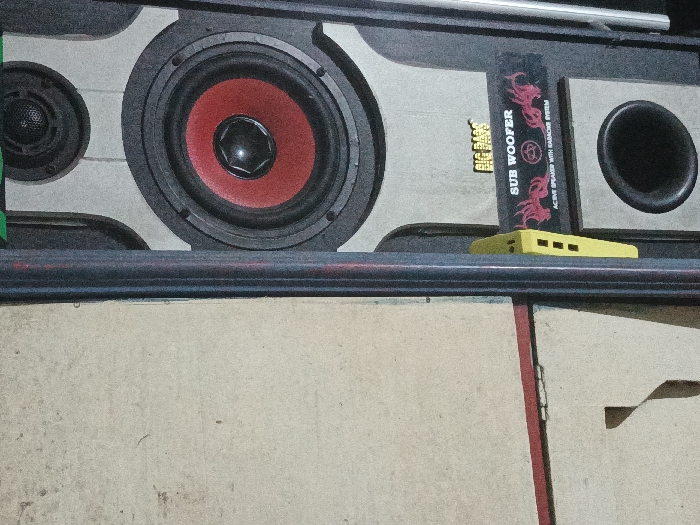 This image depicts a custom-built audio speaker enclosure in Bandung City, Indonesia