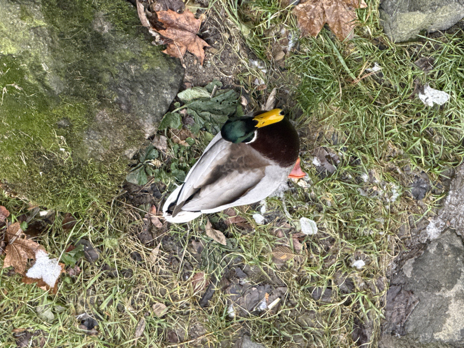 - "The scene, captured from an overhead perspective, depicts a male Mallard duck (Anas platyrhynchos) standing on a natural ground surface in Zakopane, Poland" by FM-XR4443, licensed under CC BY 4.0