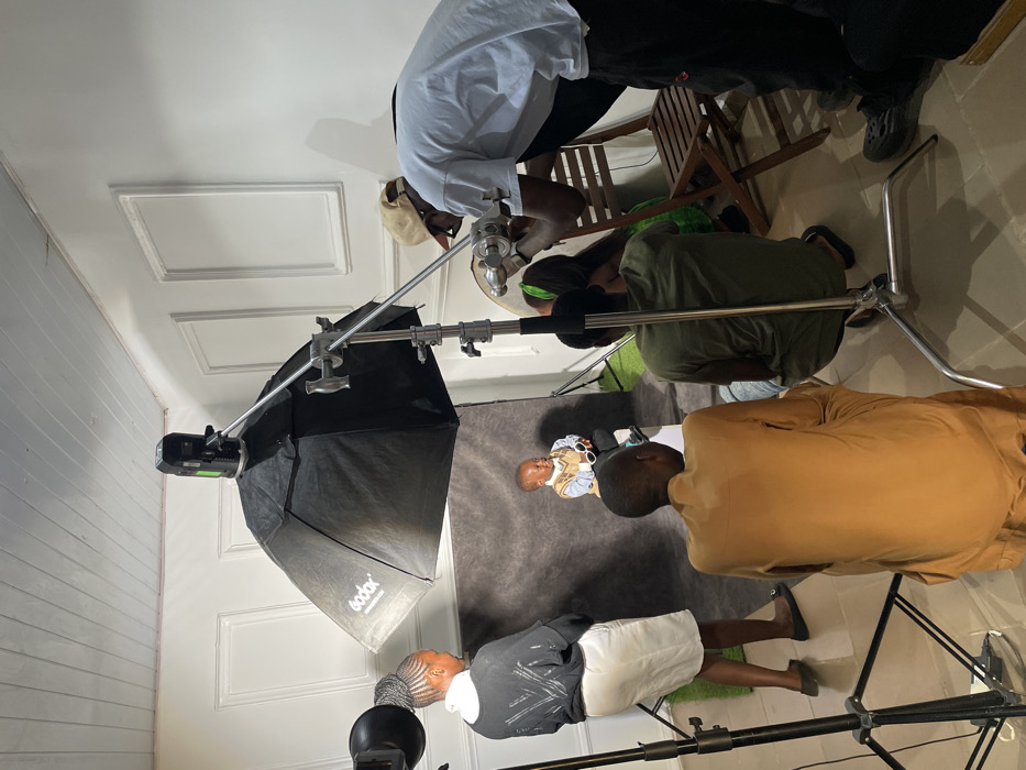 - "A baby lies on a gray blanket, surrounded by adults and photography equipment" by FM-2cWZX2, licensed under CC BY 4.0