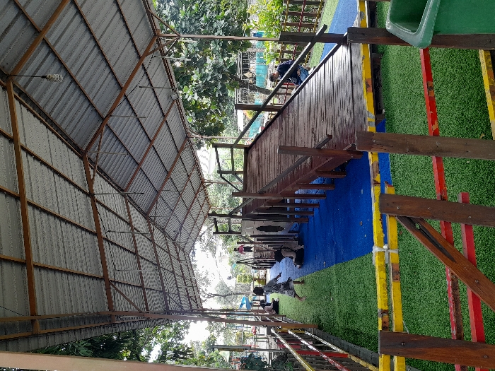 The scene is taken inside a covered playground in Kecamatan Sidoarjo, Indonesia, located at coordinates -7