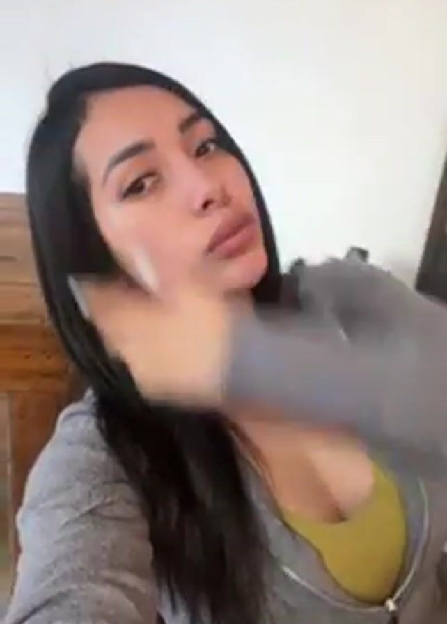 A woman is taking a selfie video inside a room