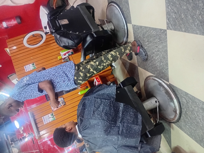 Inside a barber shop located in Dorayi, Nigeria, two individuals are present