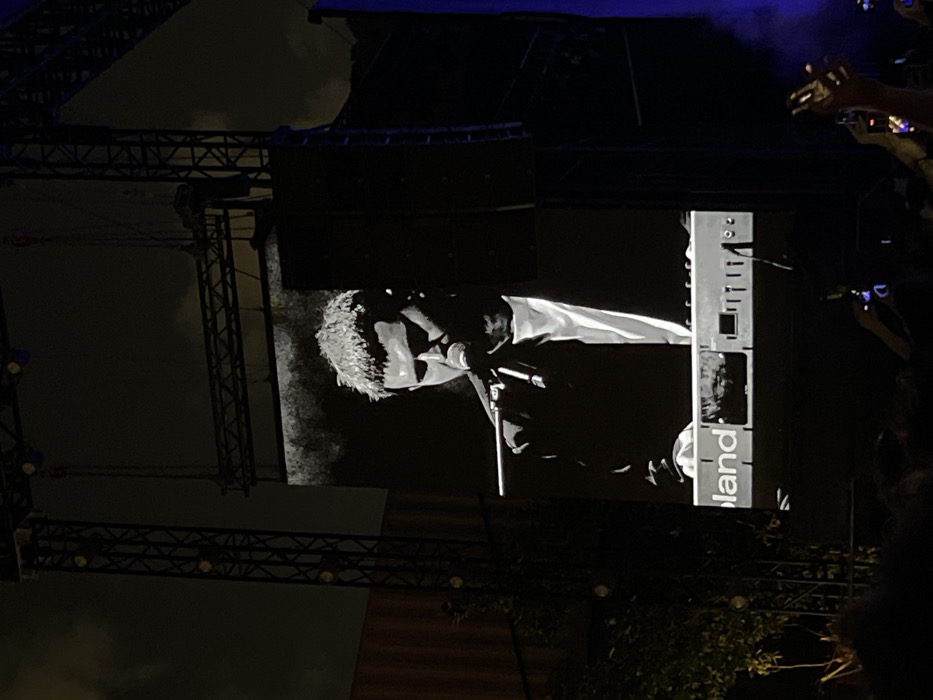 This image captures an outdoor night concert scene at a venue in Tel Aviv, Israel
