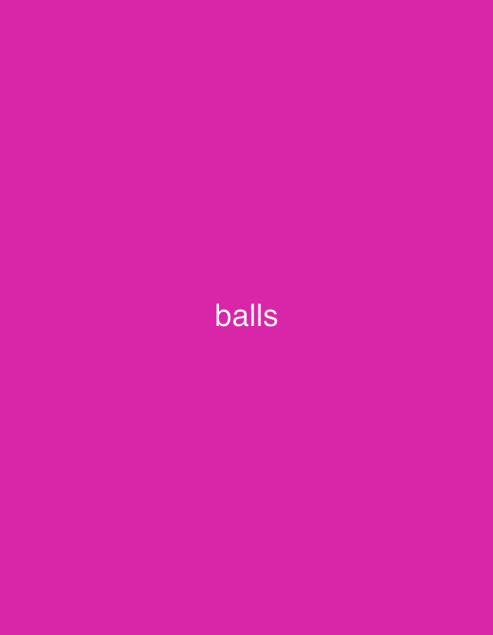 The image displays a uniform, solid fuchsia (magenta-pink) background. Centered horizontally and vertically within this background is the word "balls" rendered in white, sans-serif lowercase typeface. No other visual elements, individuals, objects, actions, or environmental details are present. The image provides no discernable information regarding a specific location within the city of Voyvodinovo, Bulgaria, or any other geographical area.
