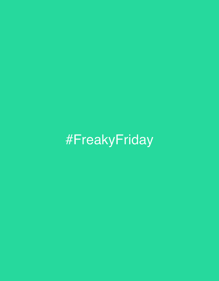 The image displays a solid teal-green background. Centered on this background is the white text "#FreakyFriday". No people, physical subjects, objects, actions, or interactions are present. The environment is an abstract, two-dimensional color field. There is no visual information within the image indicating a specific physical location, including the city of Bar, Montenegro.