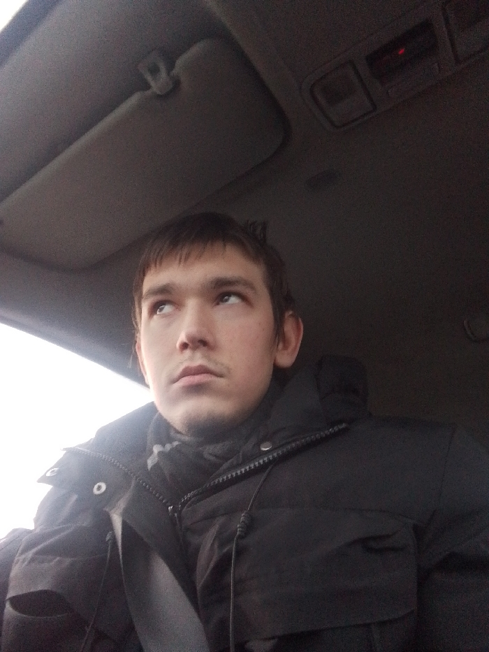 - "The image displays a young adult male seated inside a vehicle, likely a car or van, looking upwards and to the left" by FM-mibk92, licensed under CC BY 4.0