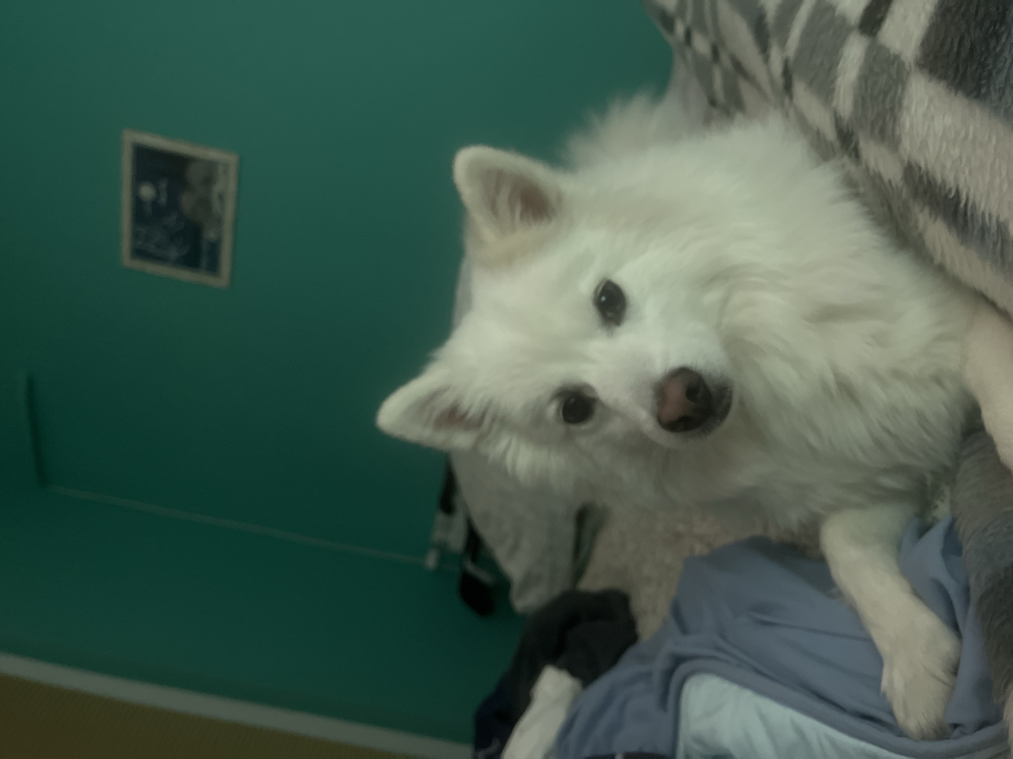 - "A white, long-haired dog, consistent with a Samoyed or American Eskimo Dog breed, is depicted in a medium close-up, lying down indoors within a residence in Sofia, Bulgaria" by FM-H3Lpa2, licensed under CC BY 4.0