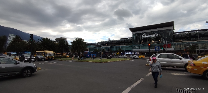 - "A wide-angle street-level photograph, timestamped February 26, 2024, at 17:11, depicts a busy urban intersection in Quito, Ecuador" by FM-niREg2, licensed under CC BY 4.0