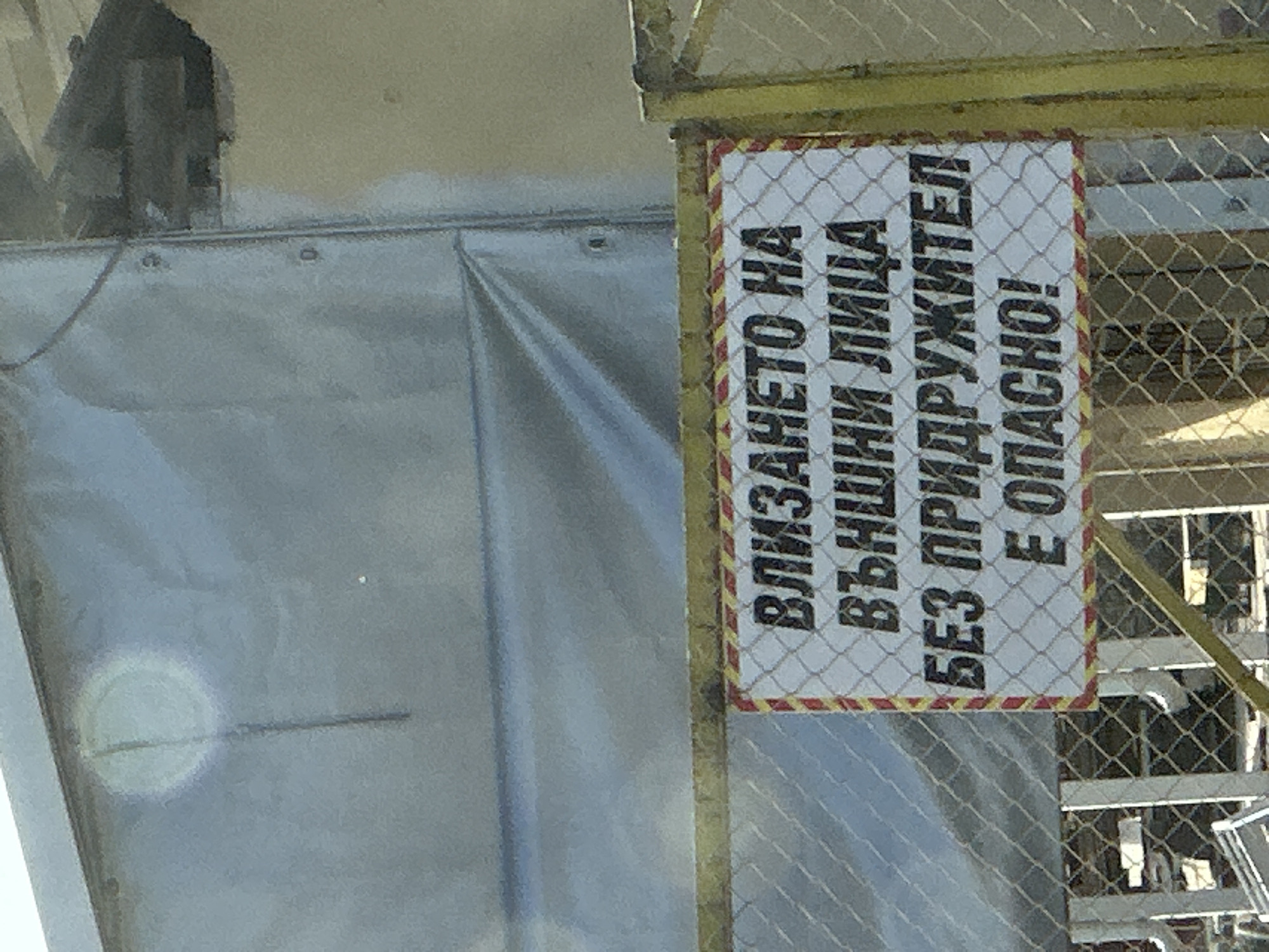 - "An outdoor scene in Targovishte, Bulgaria, depicts a warning sign attached to a yellow-framed chain-link fence" by FM-RPxQW2, licensed under CC BY 4.0