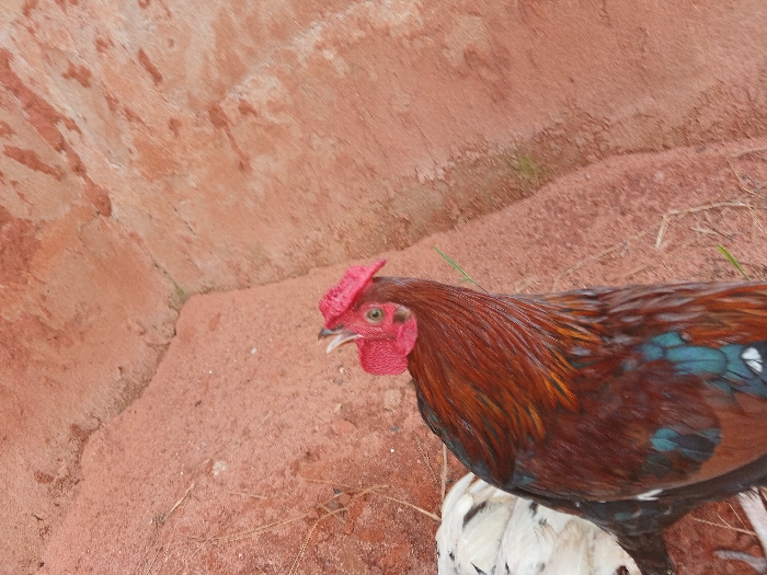 - "A rooster with a bright red comb and wattle is captured in a close-up, angled shot in Idah, Nigeria" by FM-Oh2n63, licensed under CC BY 4.0
