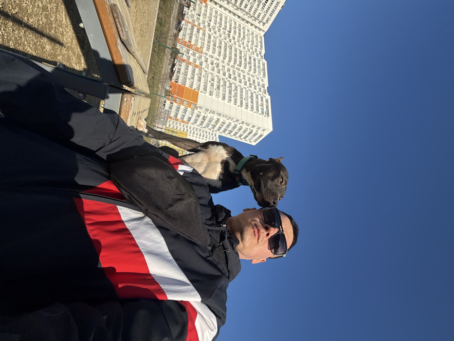 - "The image depicts an outdoor scene in the city of Anapa, Russia, featuring an adult male and a dog" by FM-Q0AMB2, licensed under CC BY 4.0
