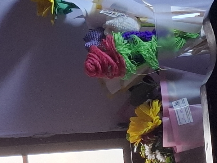 - "bouquet of flowers arranged in a pink and white wrapper" by FM-UzC3J2, licensed under CC BY 4.0