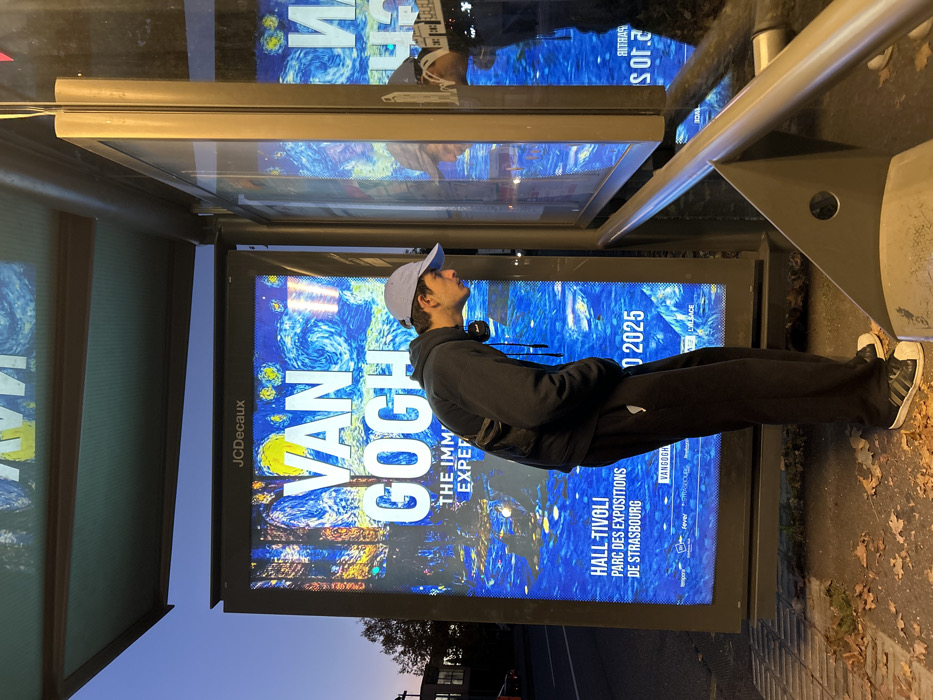 - "An outdoor, eye-level photograph taken at dusk or night in Geispolsheim, France, depicts a young male individual interacting with a public advertising display unit" by FM-C5pvp1, licensed under CC BY 4.0