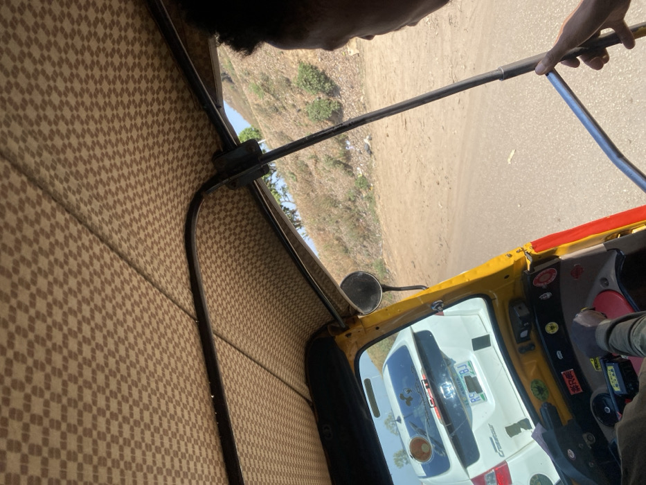 - "The image depicts an interior view from a yellow and red three-wheeled vehicle, commonly known as a Keke Napep, traveling in Jos, Nigeria" by FM-vV4o63, licensed under CC BY 4.0