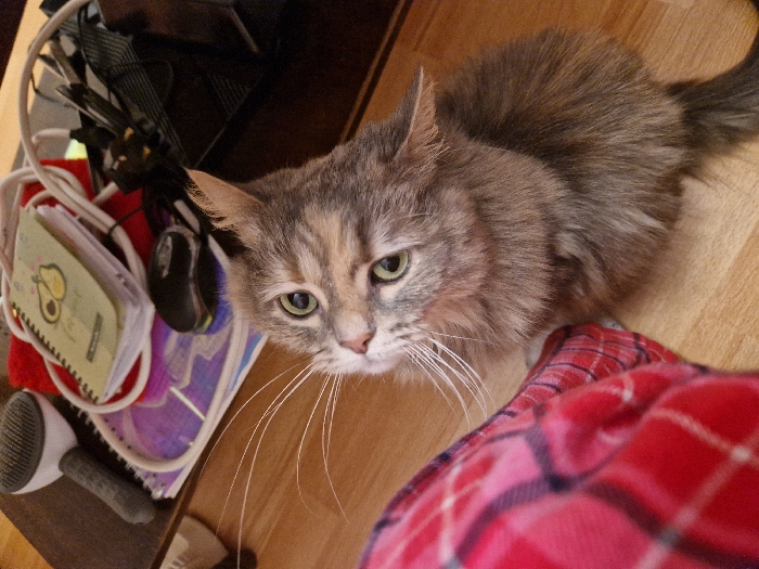 - "An indoor scene in Lovech, Bulgaria, features a domestic cat sitting on a light wooden floor" by FM-JBLtz2, licensed under CC BY 4.0