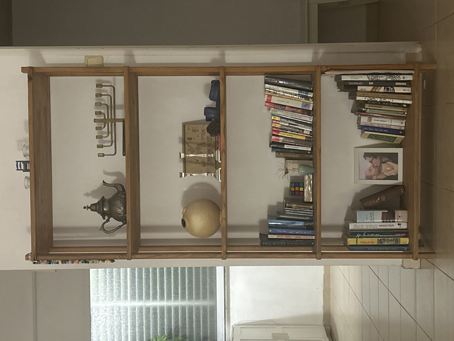 - "A full-height, five-shelf wooden bookcase stands centrally against a light-colored wall in a residence in Haifa, Israel" by FM-yf17E3, licensed under CC BY 4.0