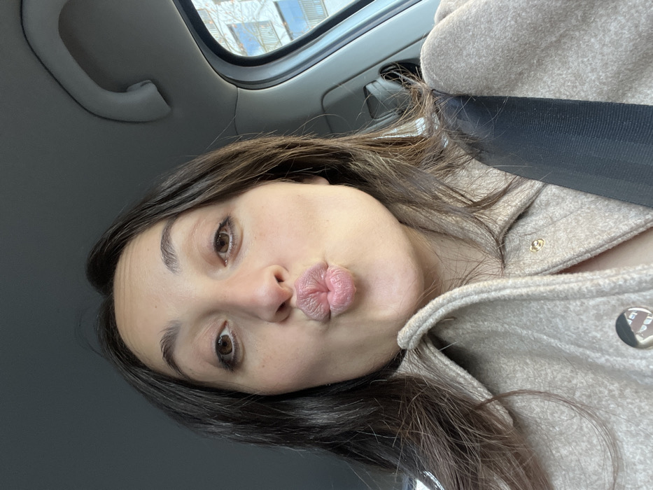 - "A woman with long dark brown hair is depicted from the chest up, positioned inside a vehicle, likely taking a selfie" by FM-YPNSq2, licensed under CC BY 4.0