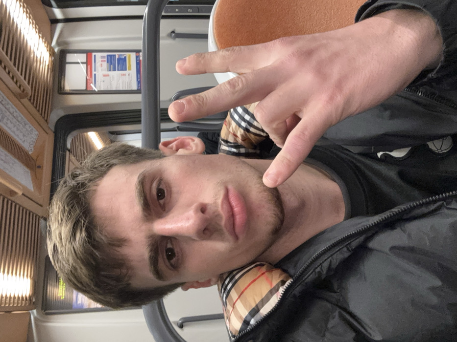 - "A young adult male with light skin, short brown hair, brown eyes, and light chin stubble is depicted in a forward-facing image taken inside a public transport vehicle in Bischheim, France" by FM-DELcs2, licensed under CC BY 4.0