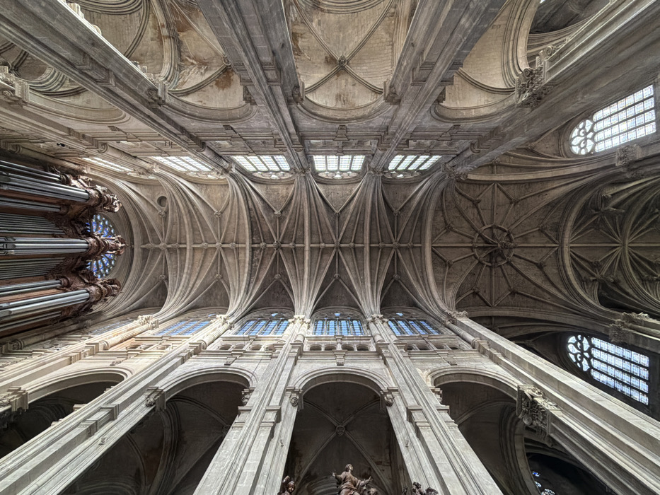 - "The image presents a high-angle, upward perspective of the interior architecture of the Church of Saint-Eustache in Paris, France" by FM-AJf9d2, licensed under CC BY 4.0