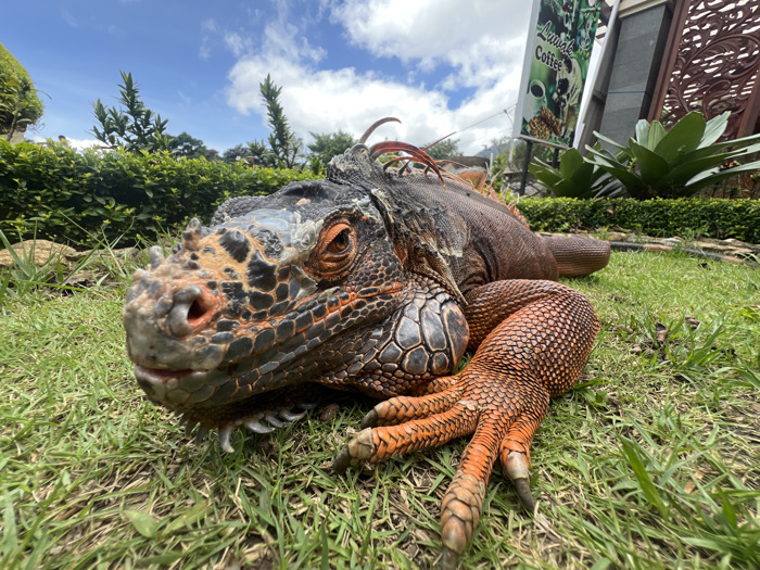 - "A large, reddish-orange iguana rests on a patch of green grass in Bedugul, Indonesia" by FM-xgQP92, licensed under CC BY 4.0