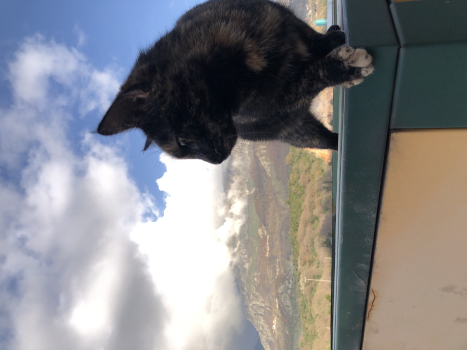 - "A small, short-haired tortoiseshell cat stands in profile, facing left, on a bi-colored ledge" by FM-ljeCD2, licensed under CC BY 4.0